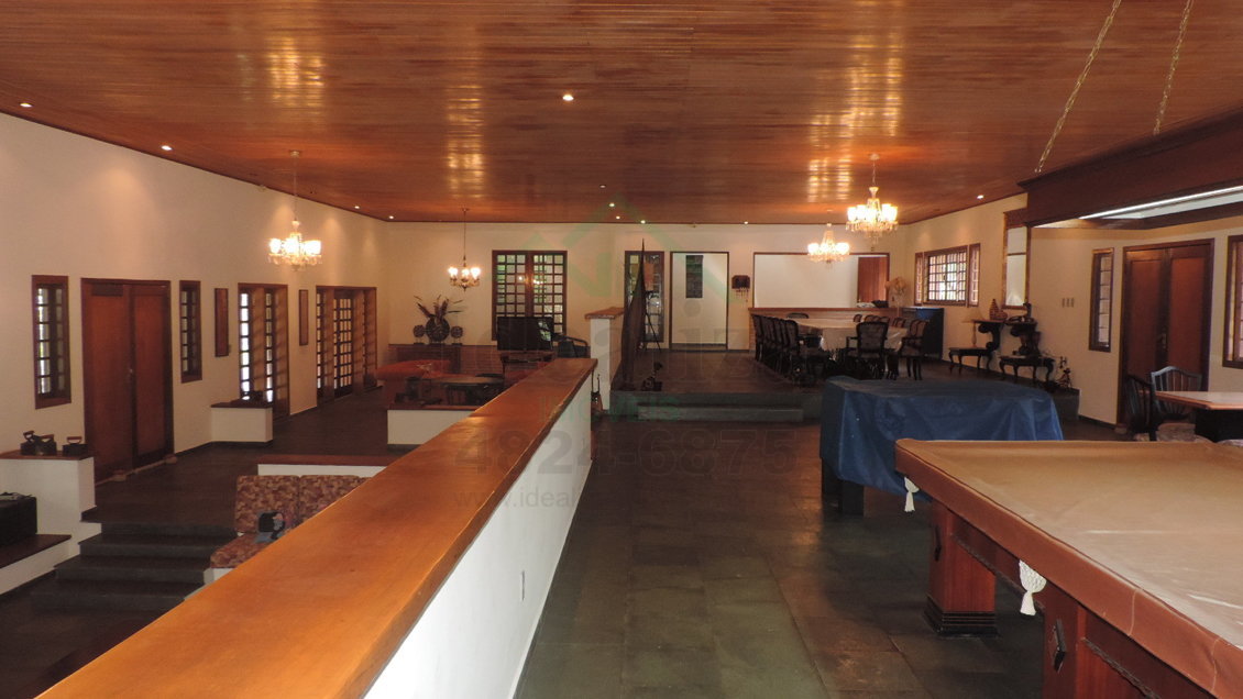 Ampla sala com 04 ambientes (sala de jantar, salão de jogos, sala de tv, sala de lareira com bar)
