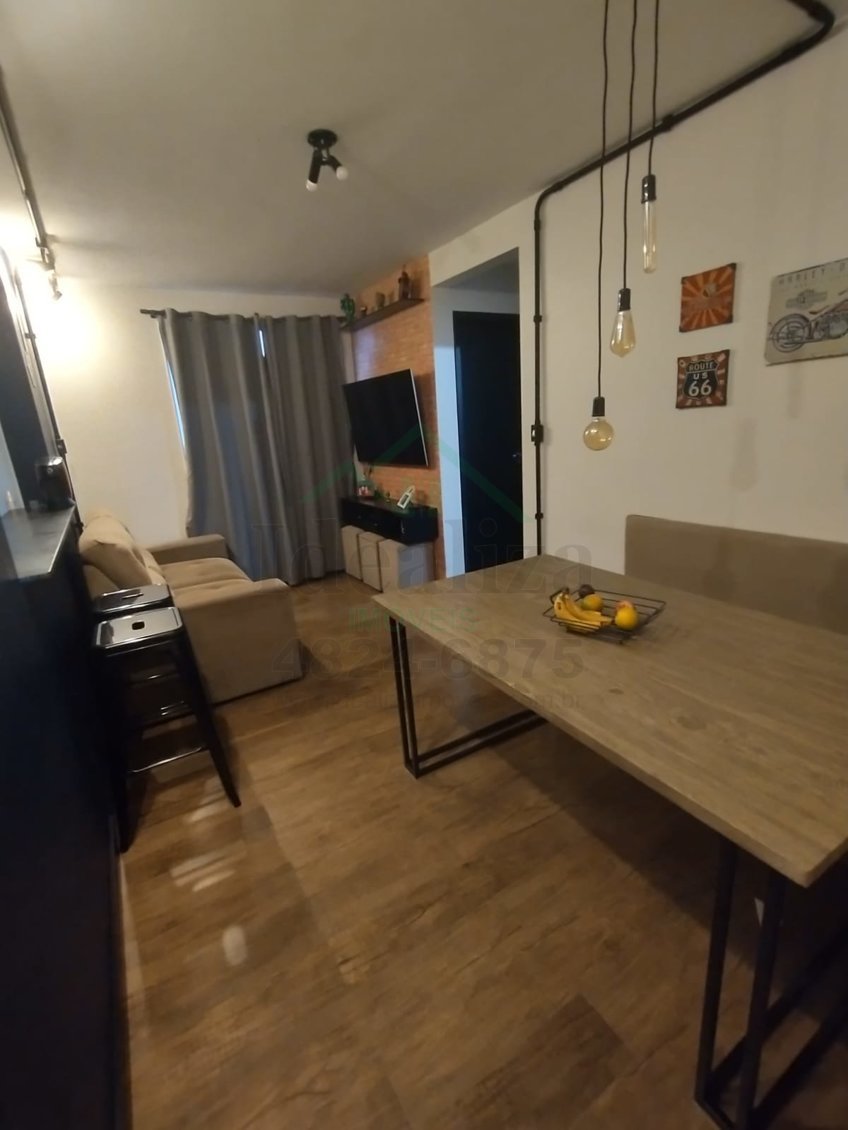 Apartamento com 45,00 m² de área útil contendo 2 dormitórios, cozinha e banheiro com armários planejados, sala de jantar, lavanderia e 1 vaga de garagem descoberta.